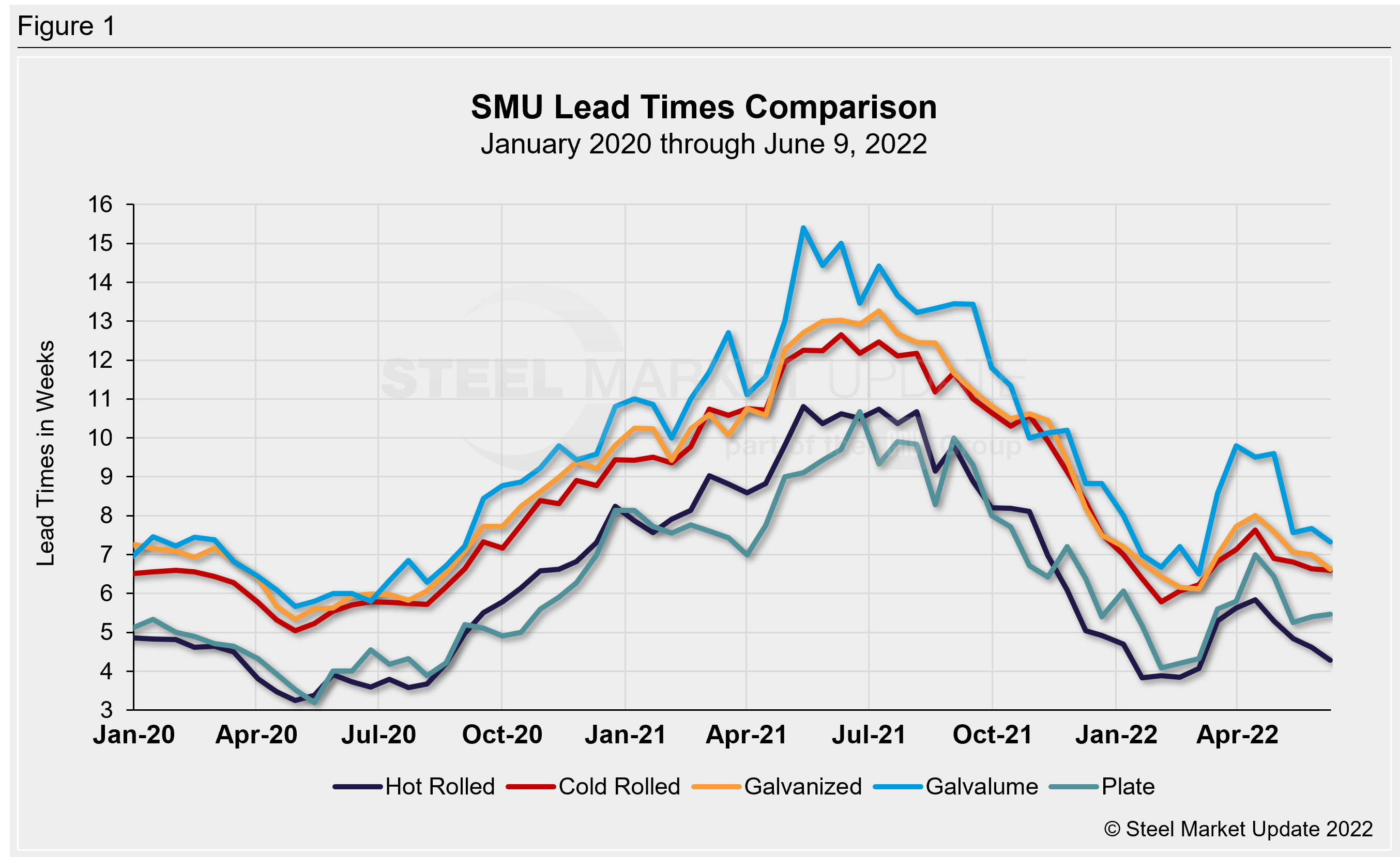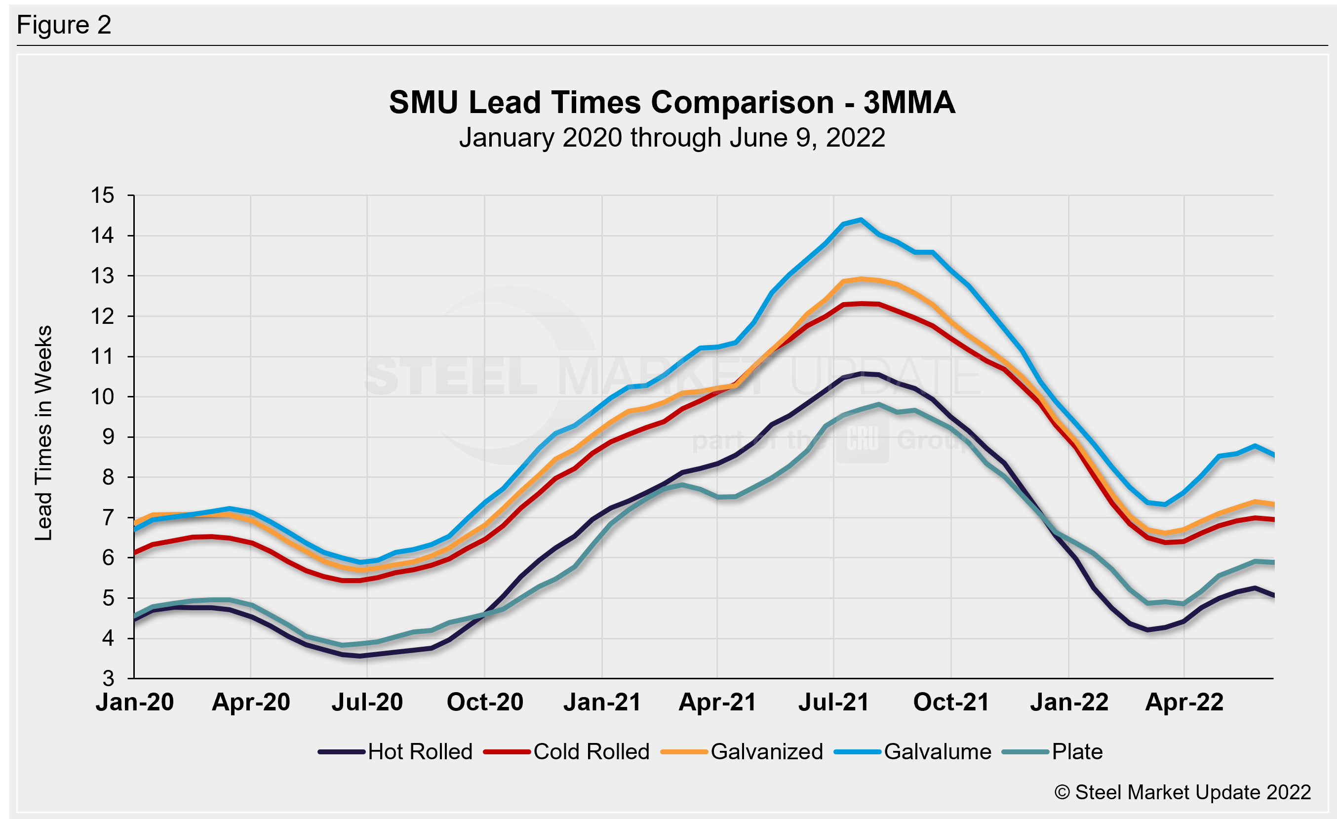 Steel Market Update’s latest market check indicates steel mill lead times continue to decline for sheet products as they move closer to historical norms. Plate lead times have been relatively flat since mid-May. Lead times over the past two weeks have been roughly in line with what we were seeing in the early weeks of 2022.