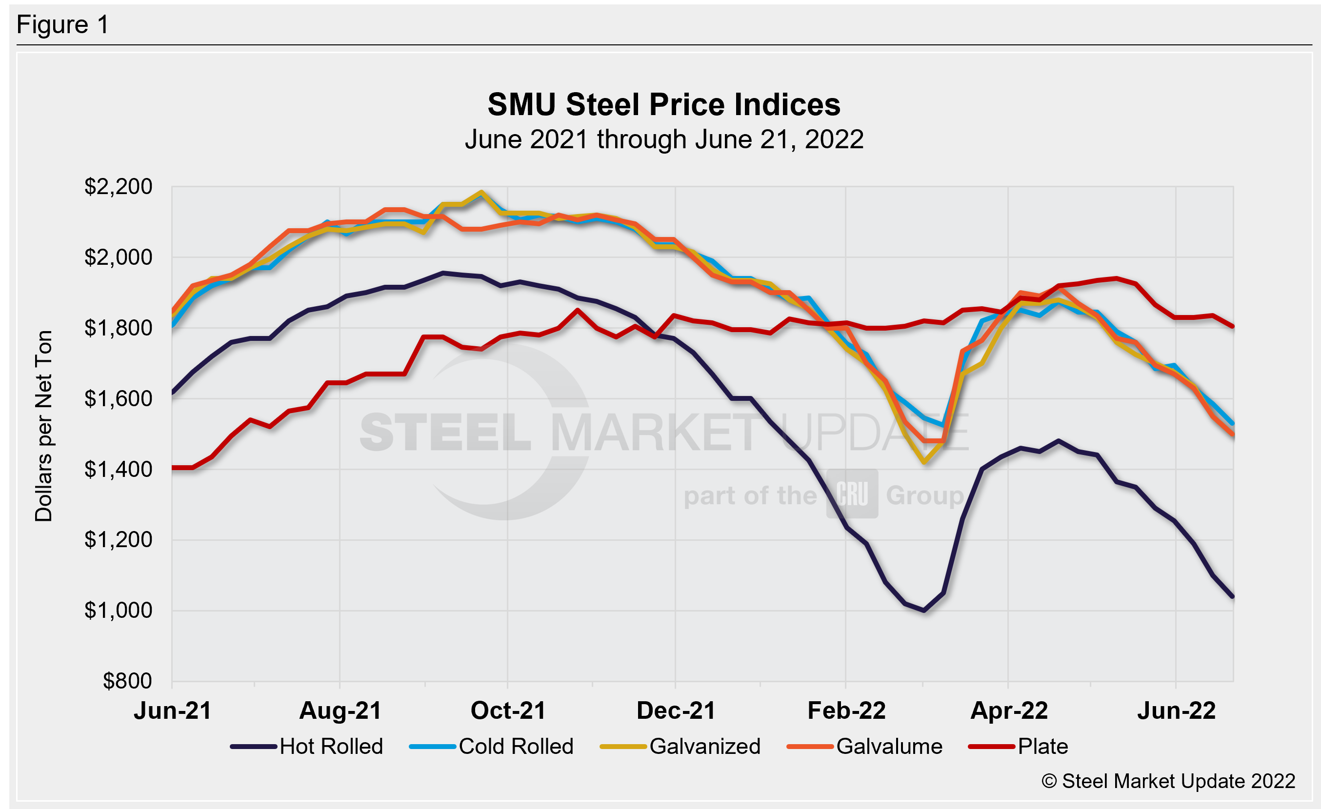 SMU Note: Below is a graphic showing our hot rolled, cold rolled, galvanized, Galvalume, and plate price history. This data is available here on our website with our interactive pricing tool. If you need help navigating the website or need to know your login information, contact us at info@SteelMarketUpdate.com.
