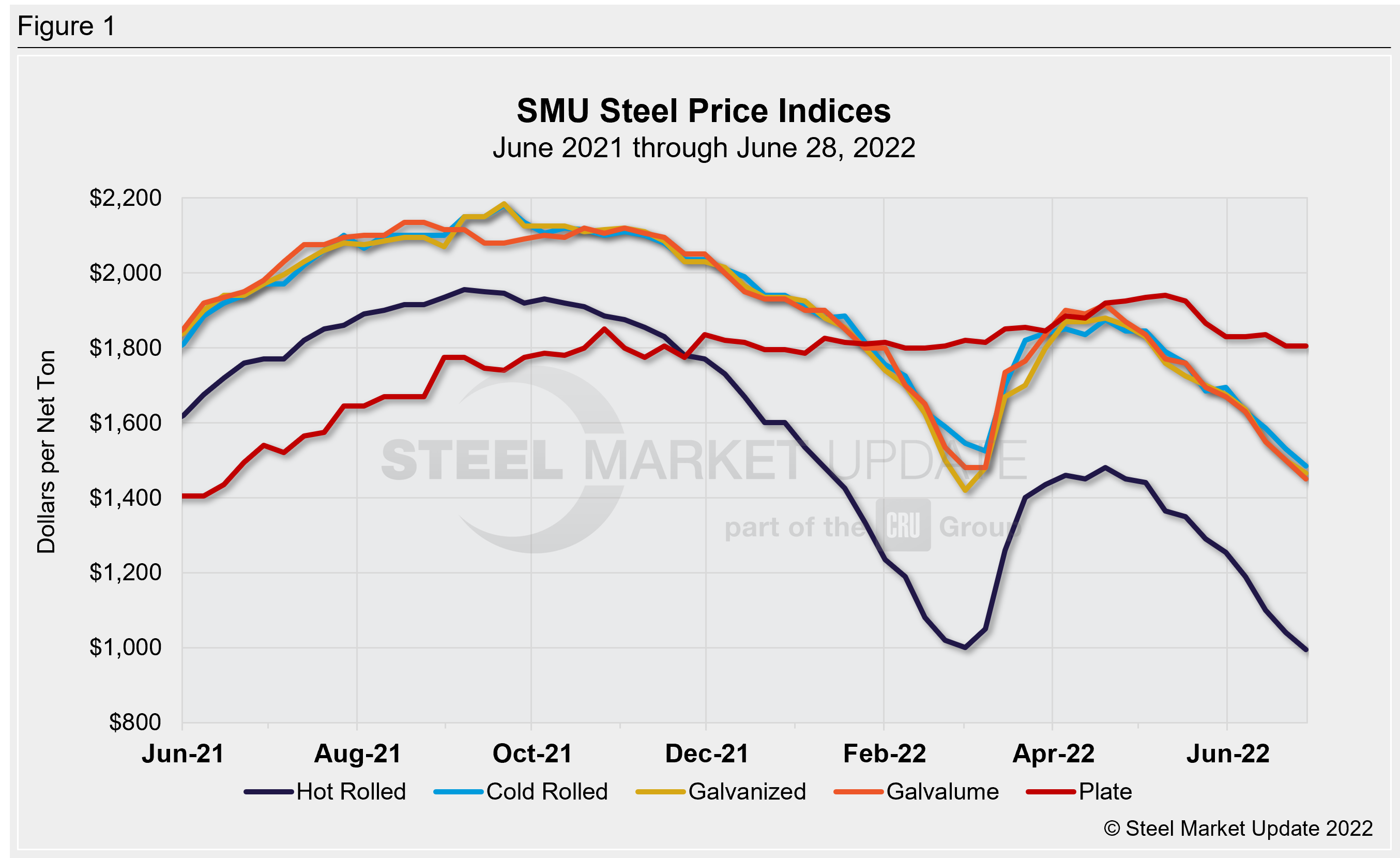 SMU Note: Below is a graphic showing our hot rolled, cold rolled, galvanized, Galvalume, and plate price history. This data is available here on our website with our interactive pricing tool. If you need help navigating the website or need to know your login information, contact us at info@SteelMarketUpdate.com.