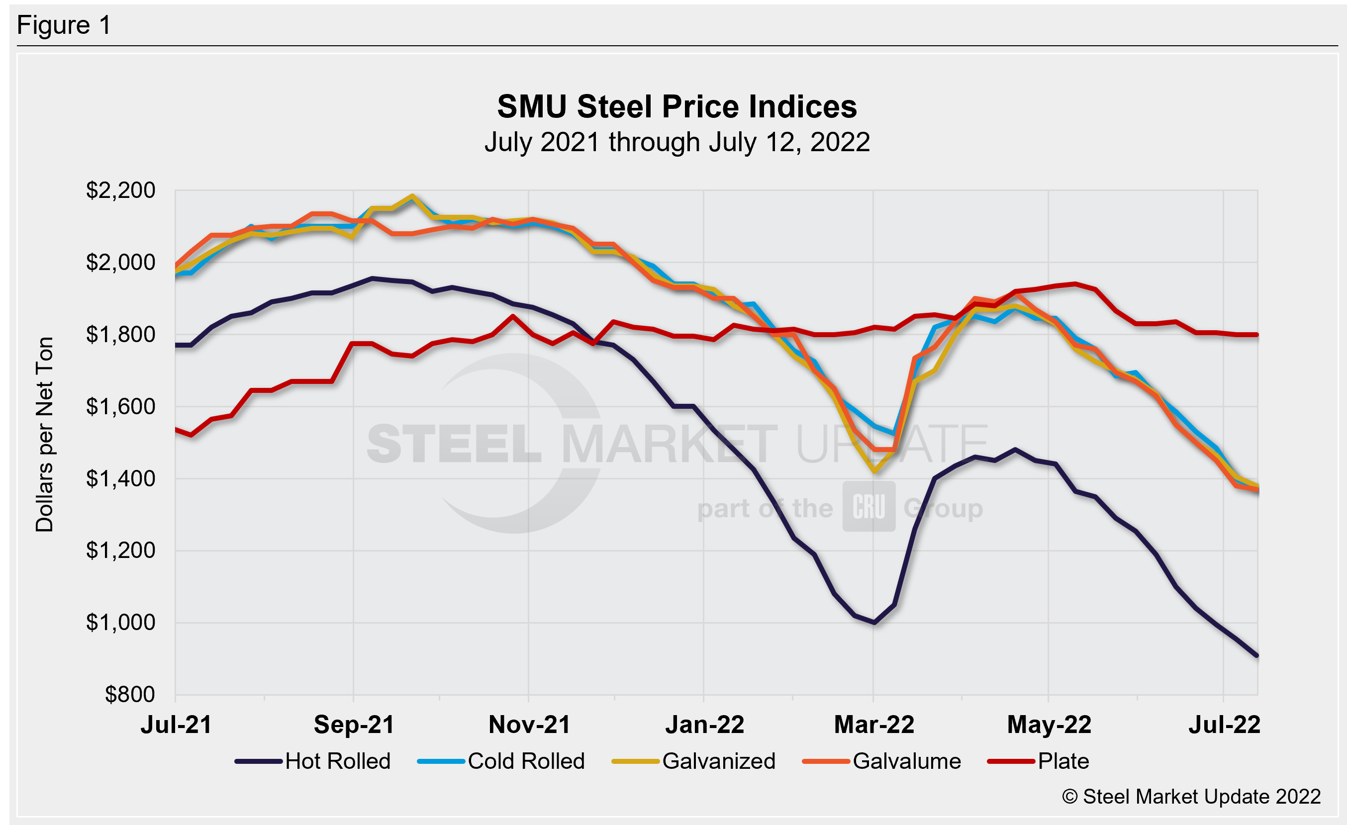 SMU Note: Below is a graphic showing our hot rolled, cold rolled, galvanized, Galvalume, and plate price history. This data is available here on our website with our interactive pricing tool. If you need help navigating the website or need to know your login information, contact us at info@SteelMarketUpdate.com.