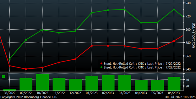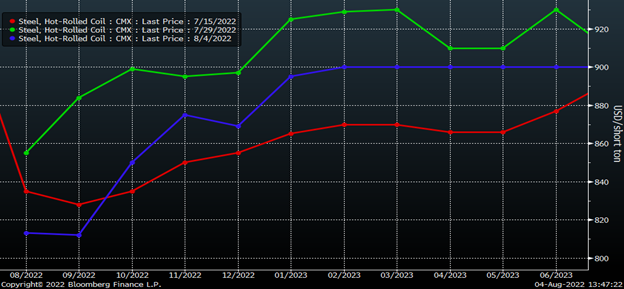 Last week, the HRC futures curve gained at least $40 from September through June 2023, marking its best week since March.