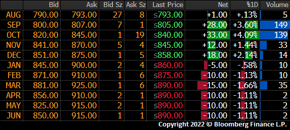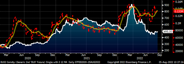 The busheling futures curve has also seen open interest extending out through calendar ’23. Whether it be a commercial or financial interest taking on these positions, it is a welcome site as liquidity works both in terms of volume as well as duration.