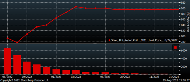 CME Hot Rolled Coil Futures Curve $/st & Monthly Open Interest