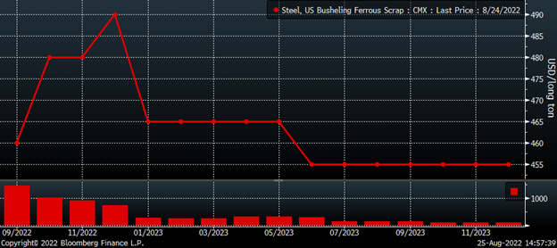 CME Busheling Futures Curve $/st & Monthly Open Interest
