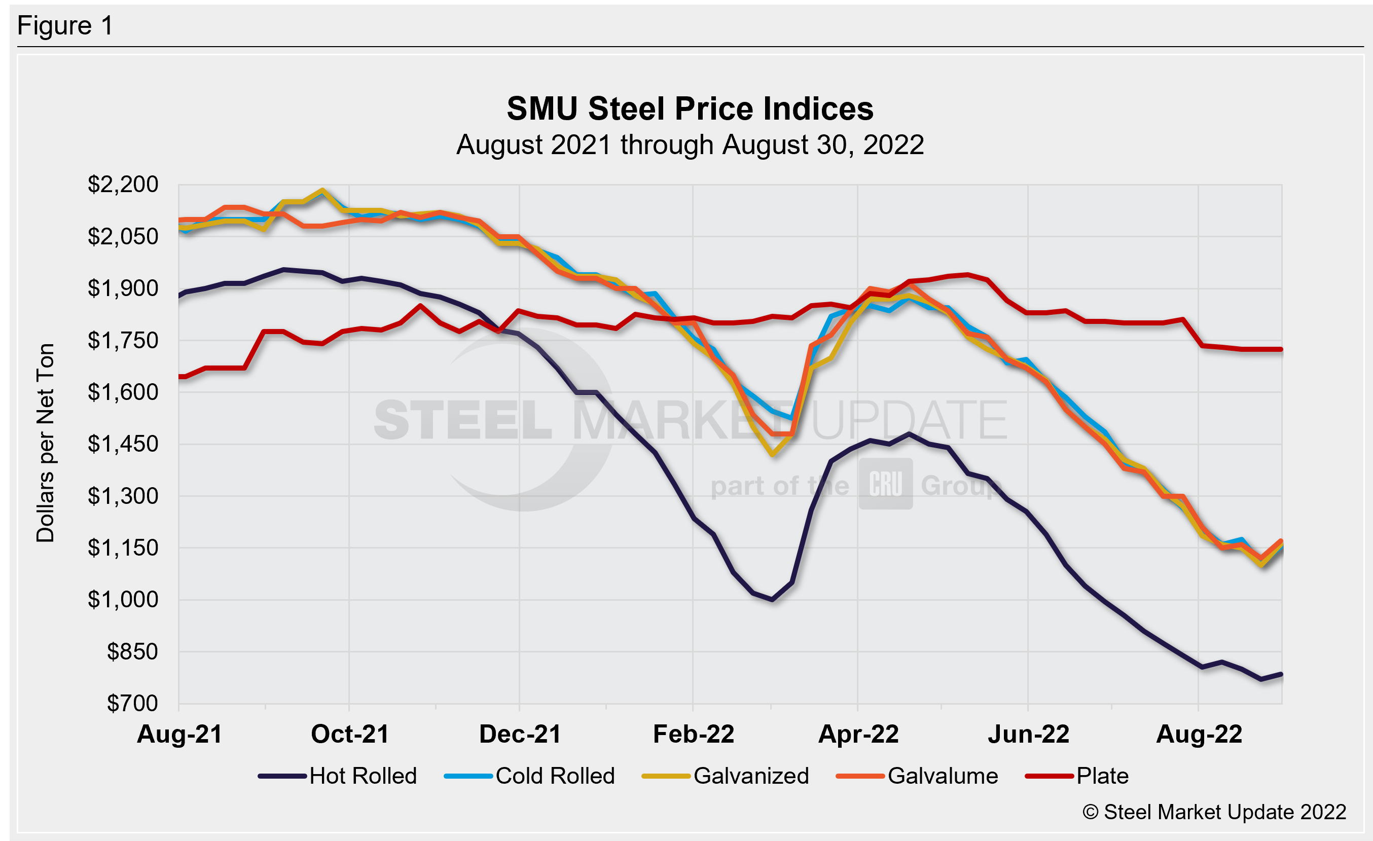 SMU Note: Below is a graphic showing our hot rolled, cold rolled, galvanized, Galvalume, and plate price history. This data is available here on our website with our interactive pricing tool. If you need help navigating the website or need to know your login information, contact us at info@SteelMarketUpdate.com.