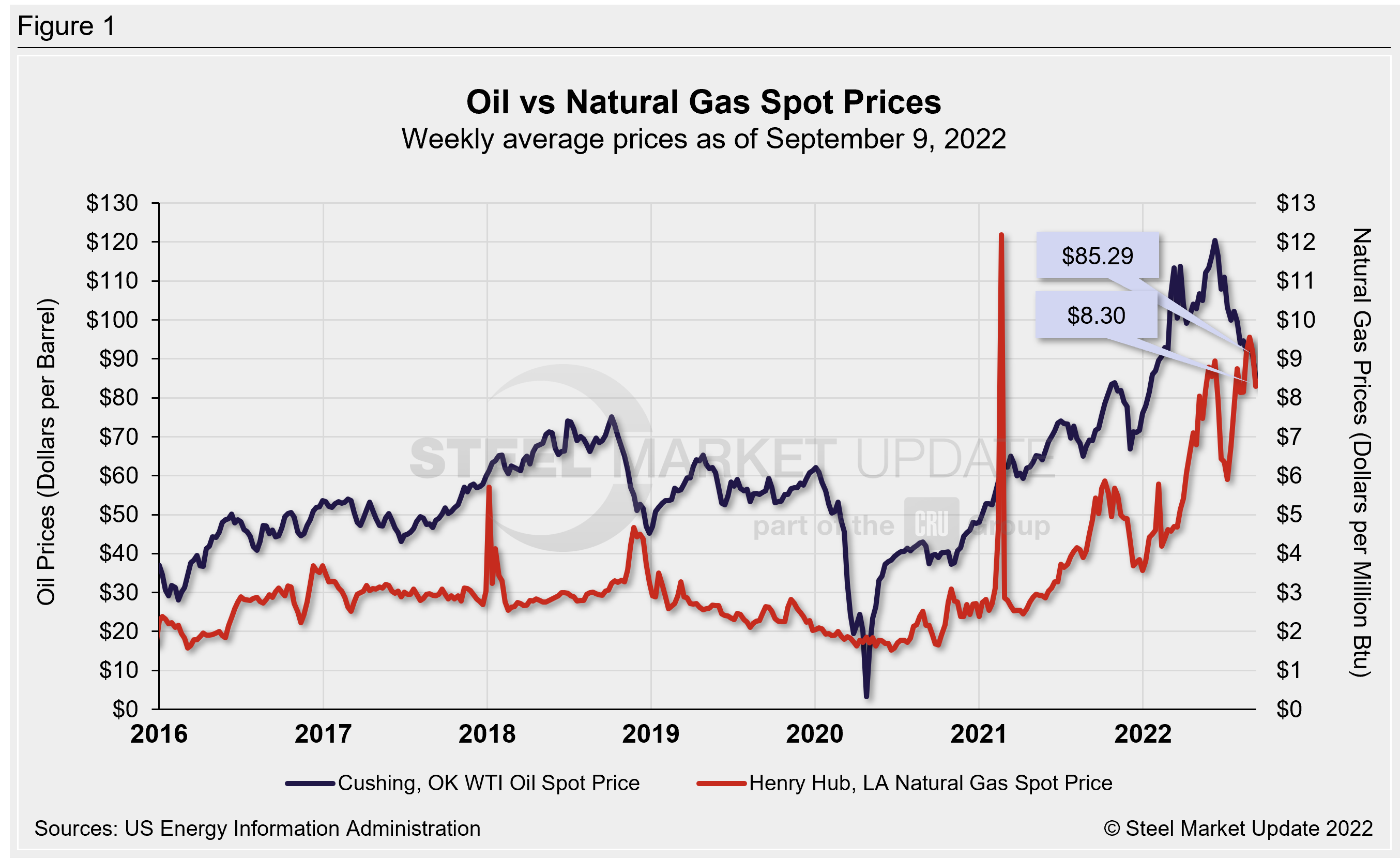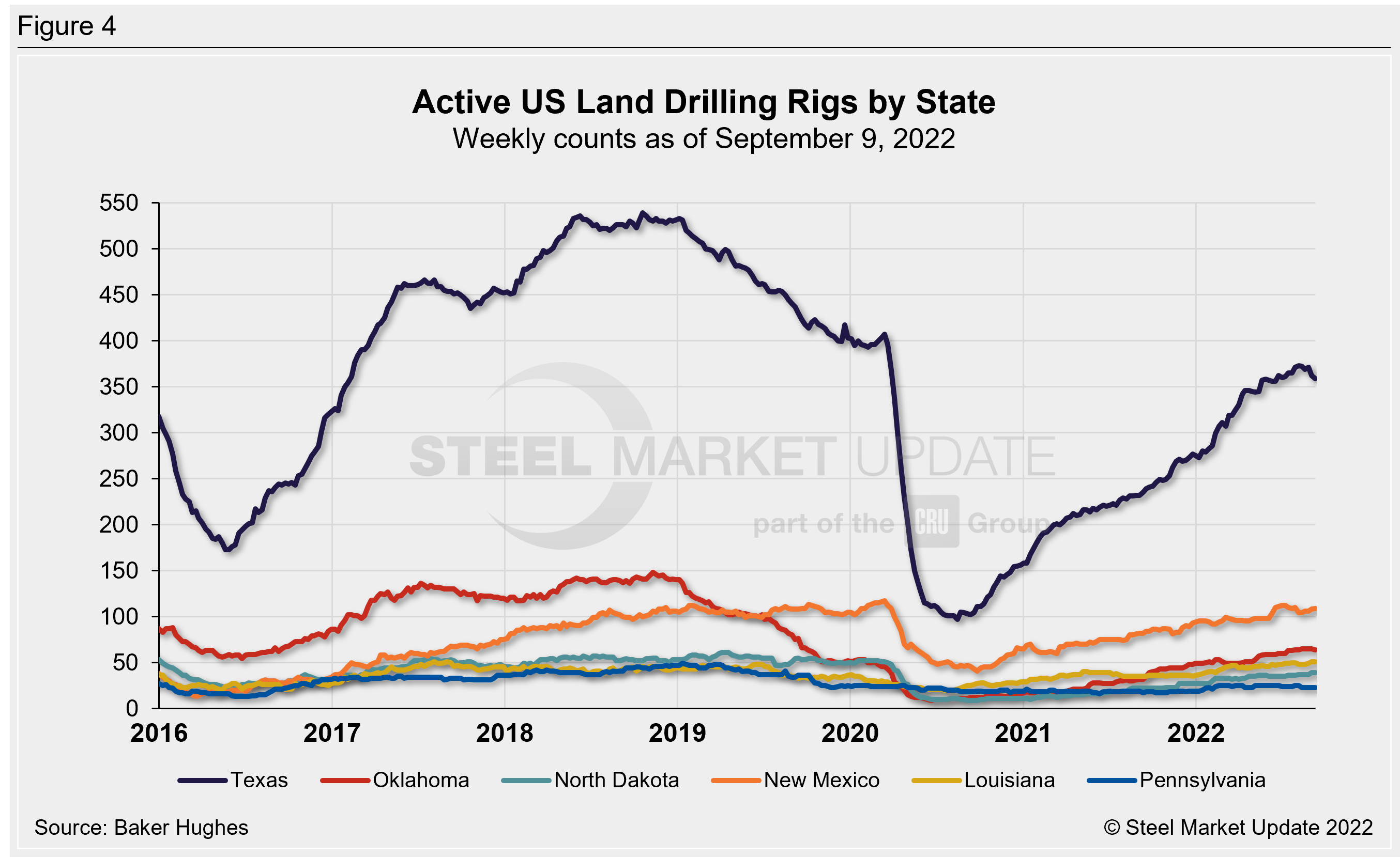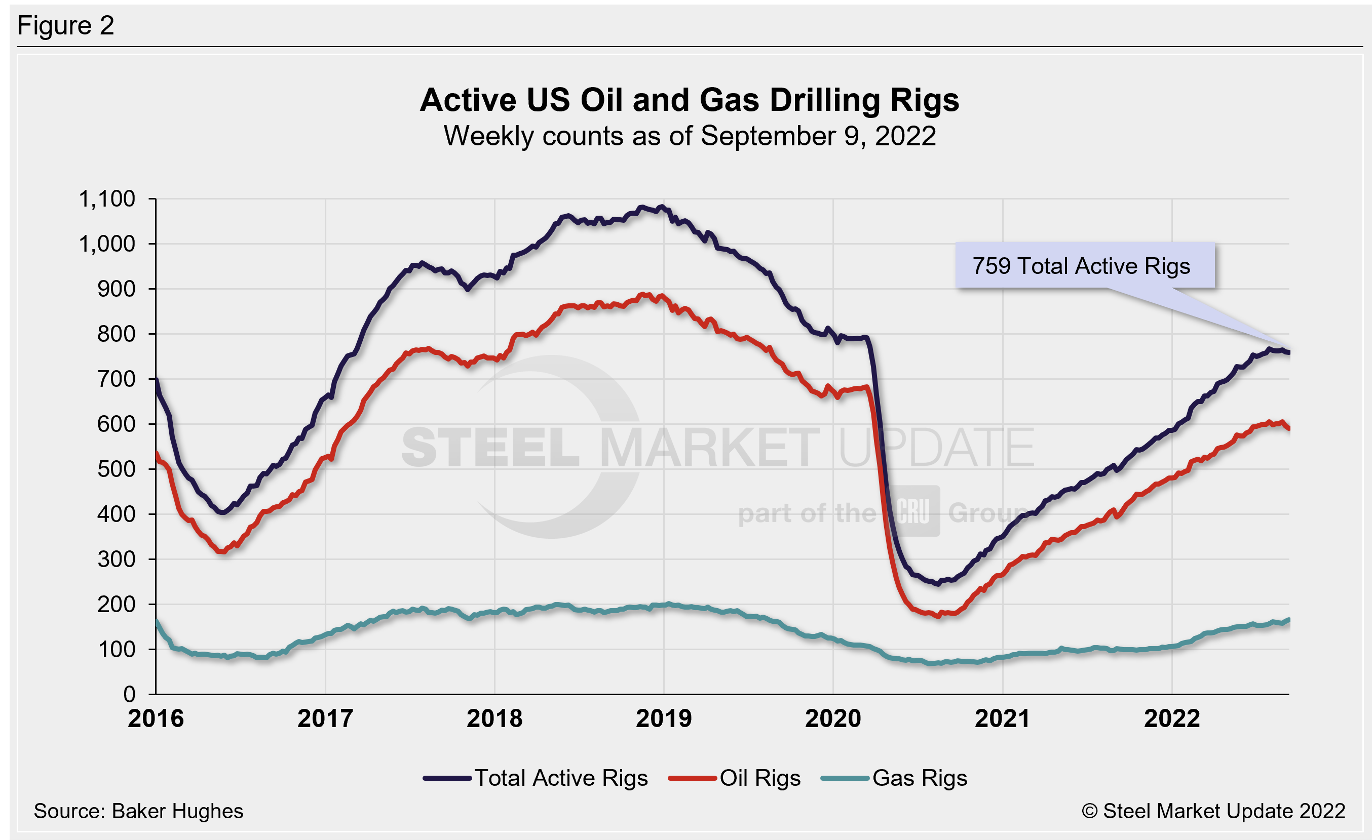 Trends in energy prices and rig counts are an advanced indicator of demand for oil country tubular goods (OCTG), line pipe and other steel products.