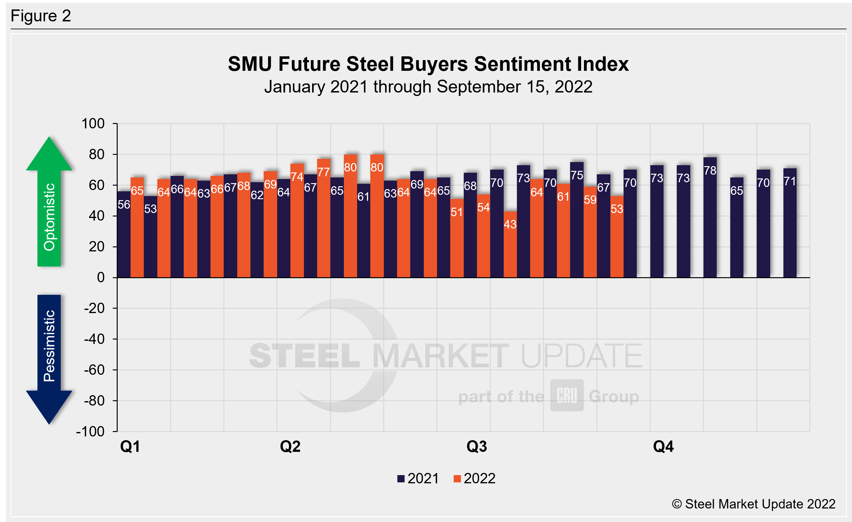 Click here to view an interactive graphic of the SMU Steel Buyers Sentiment Index or the SMU Future Steel Buyers Sentiment Index.