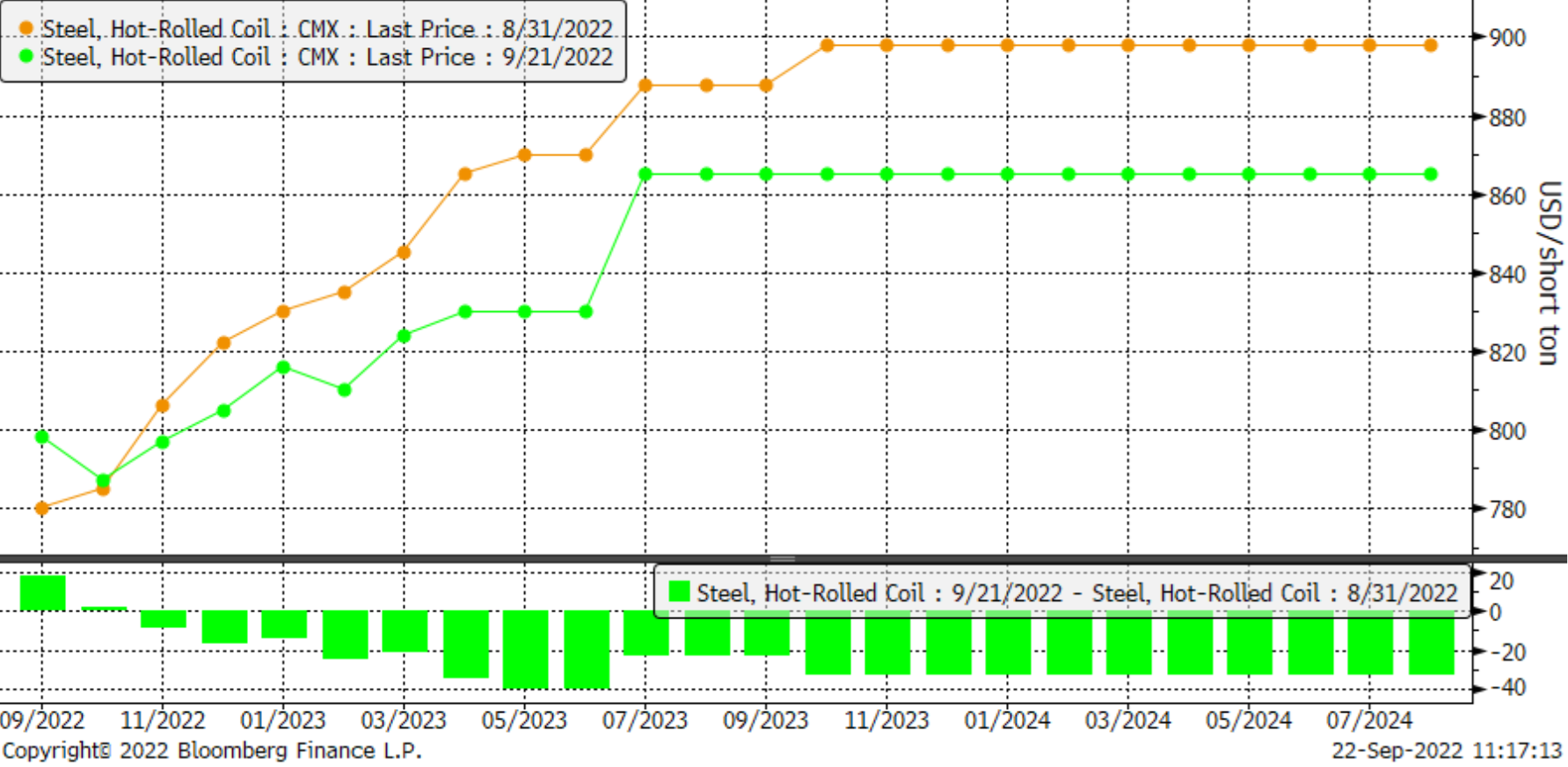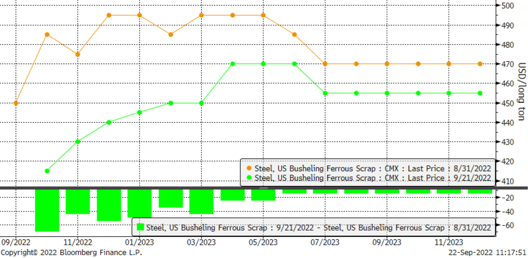 It is possible that they are taking a cue from the busheling scrap futures market outlook, which looks even worse on percentage terms as they have dropped ~10% through the January 2023 contract.