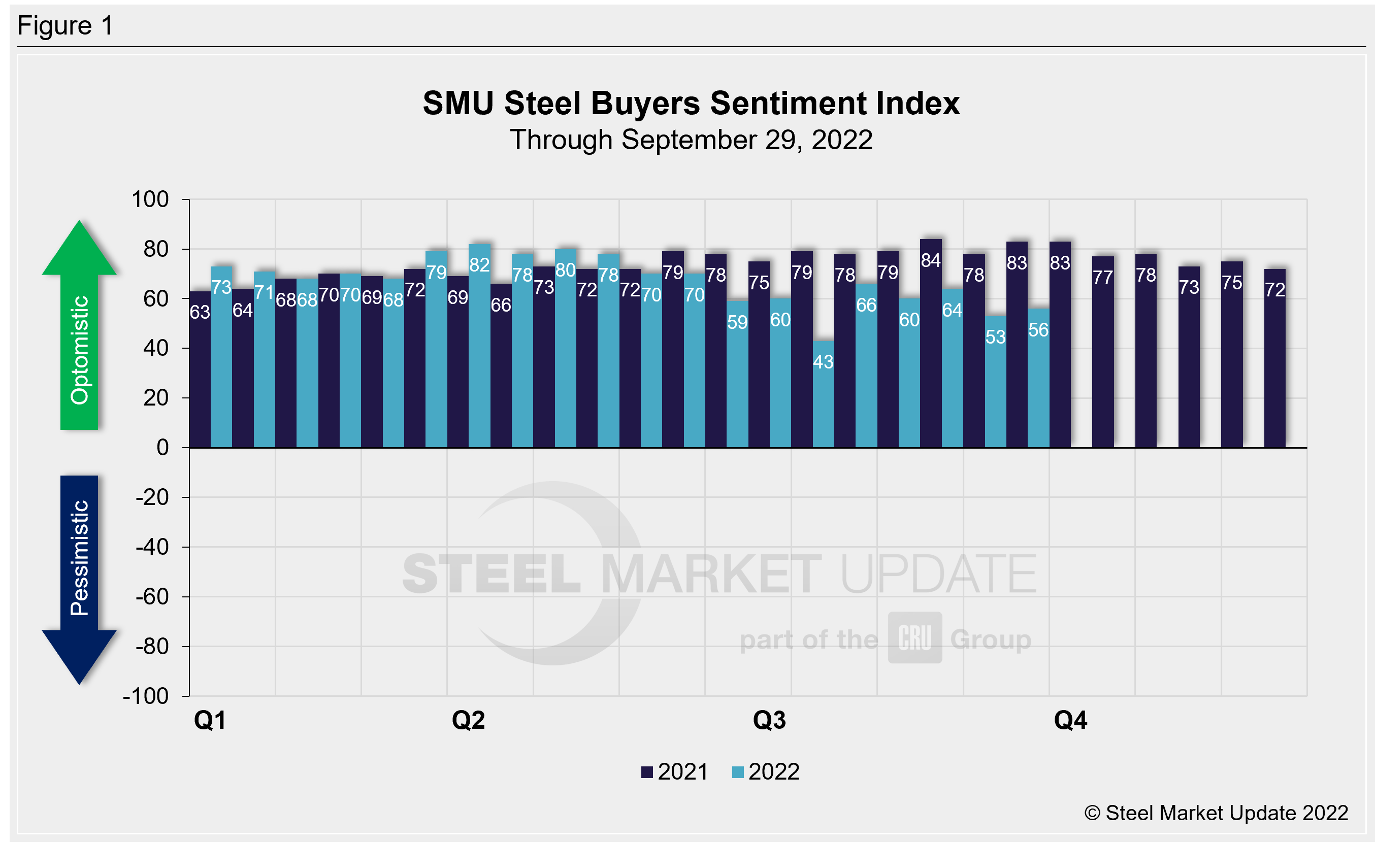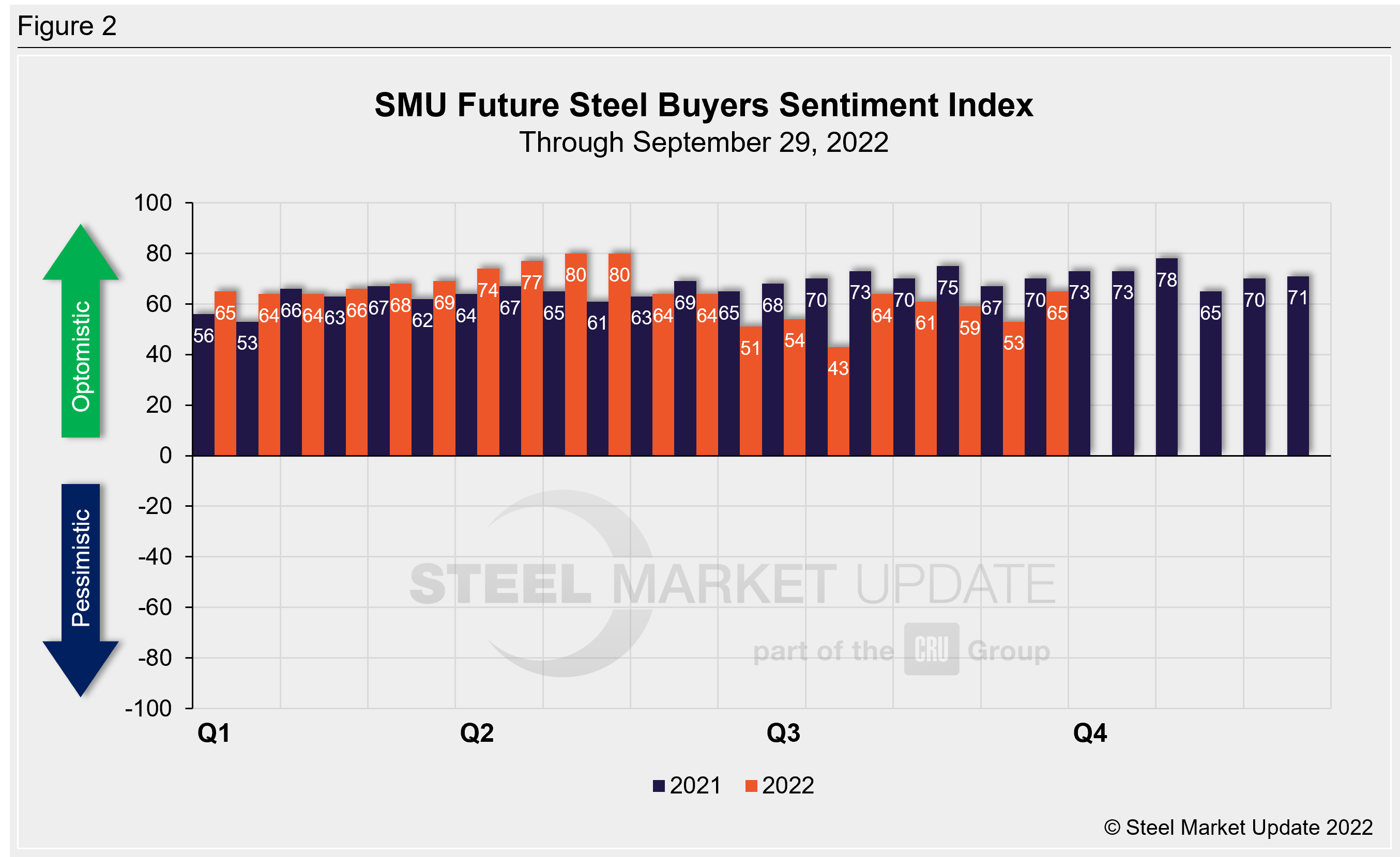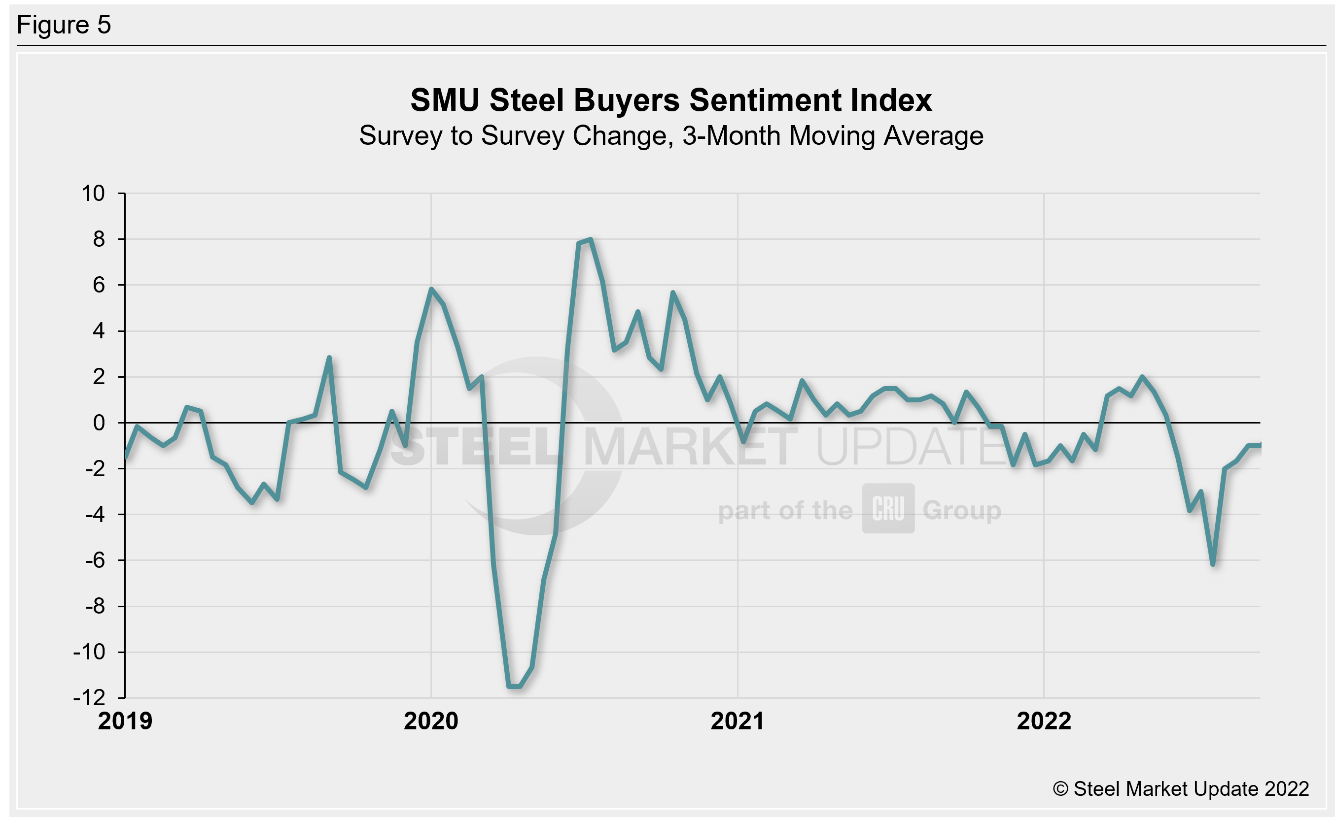 Click here to view an interactive graphic of the SMU Steel Buyers Sentiment Index or the SMU Future Steel Buyers Sentiment Index.