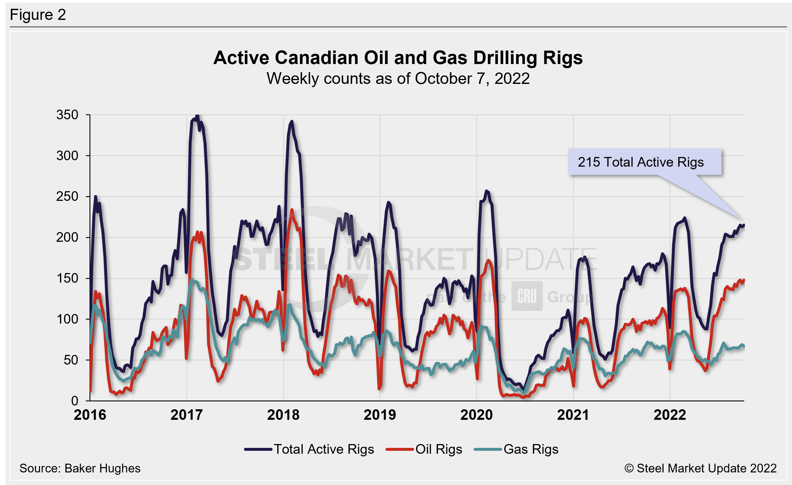 For a history of both the US and Canadian rig count, visit the Rig Count page on the Steel Market Update website here.
