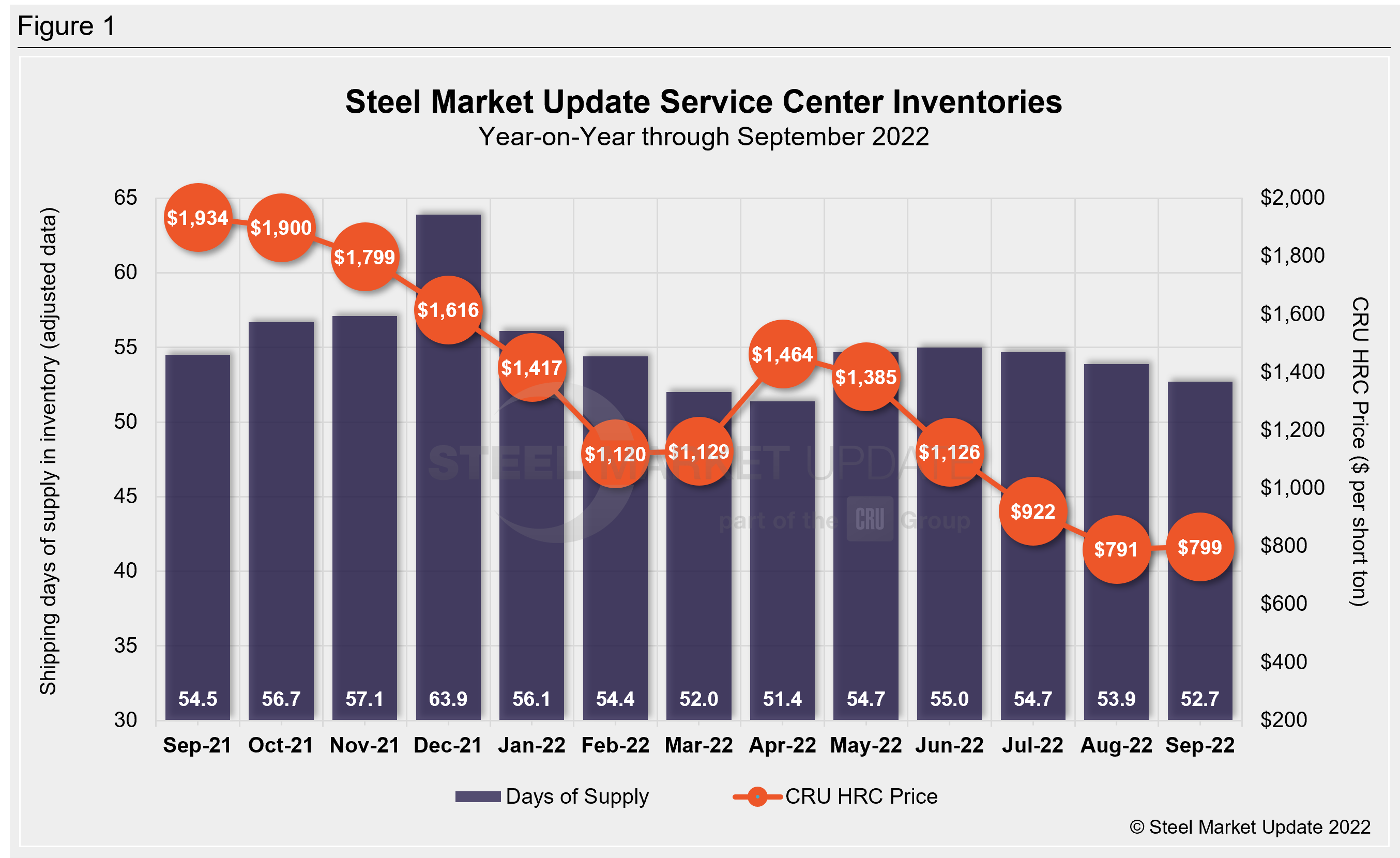 Multiple service center contacts have said that they have rightsized their inventories to account for softening demand. While inventories look balanced for now, the amount of inventory on order is concerning. Prices found a floor in August, which coincided with some opportunistic purchases. As a result, in September, the amount of inventory on order reached the highest level since March, when there was panic buying spurred by the war in Ukraine.
