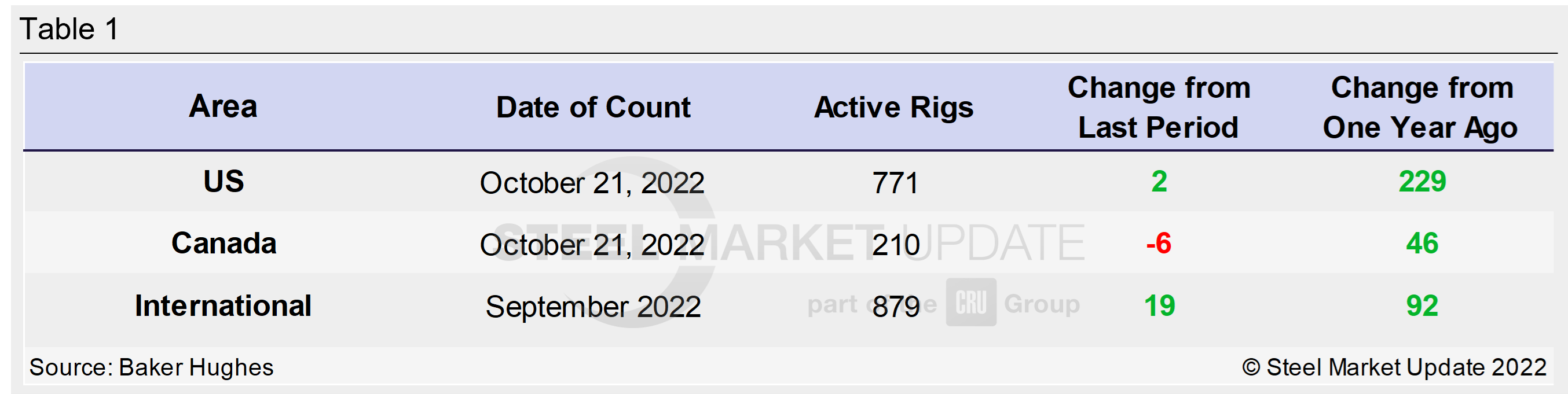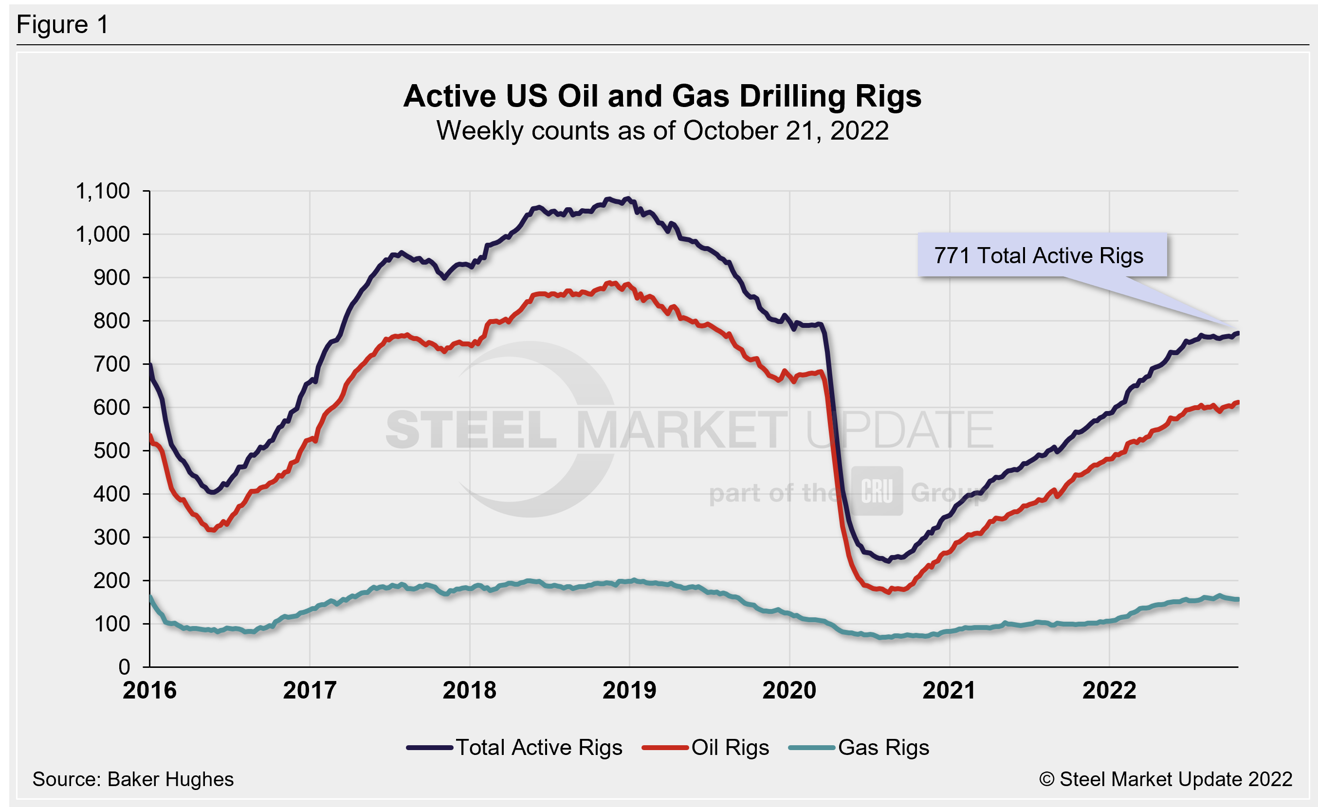 For a history of both the US and Canadian rig count, visit the Rig Count page on the Steel Market Update website here.