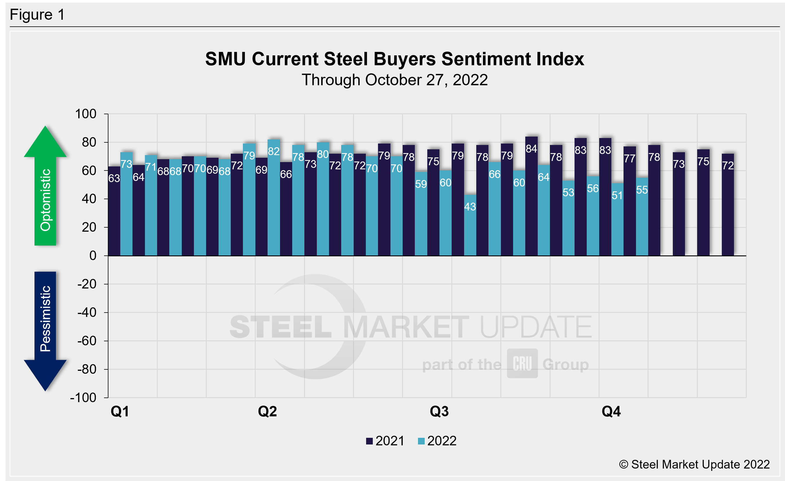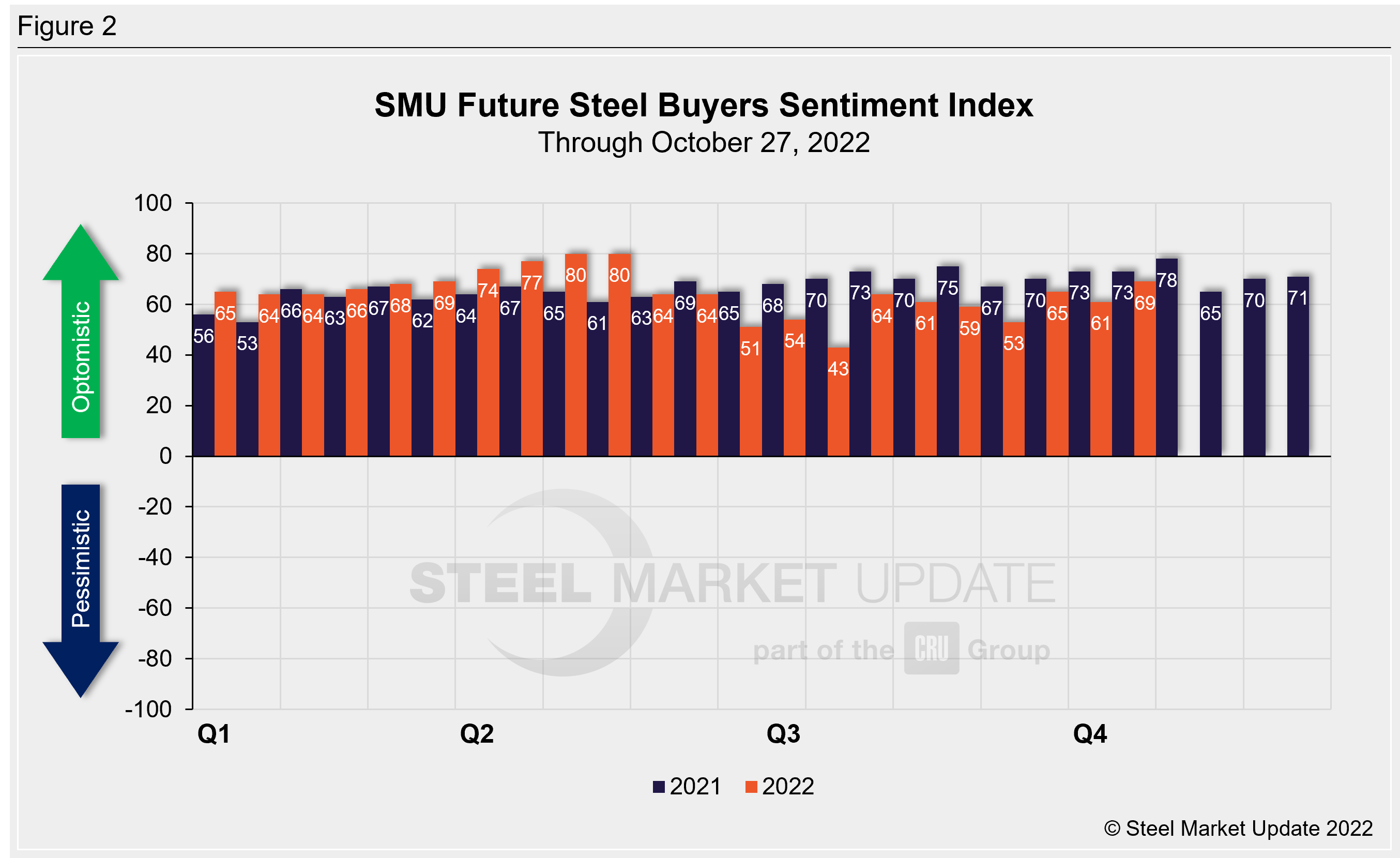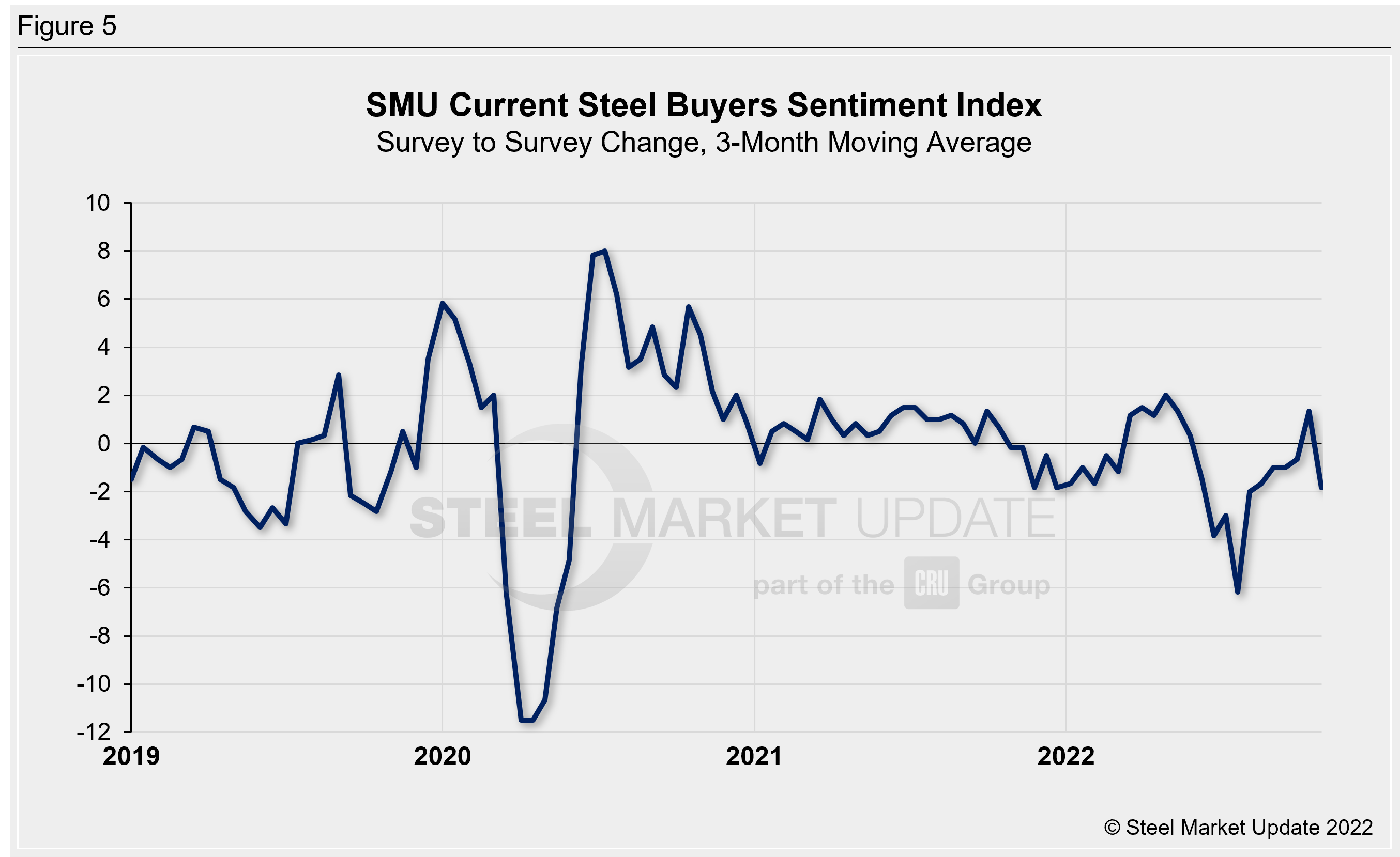 Click here to view an interactive graphic of the SMU Steel Buyers Sentiment Index or the SMU Future Steel Buyers Sentiment Index.