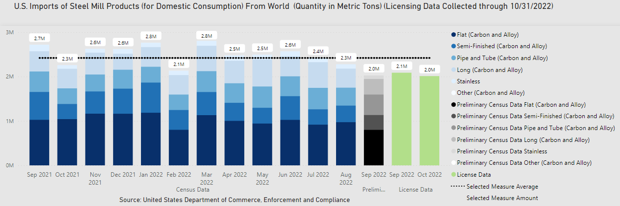 Based on licensing data, imports for October were projected to be 2 million metric tons for the month. Imports have been trending down since June due to sluggish demand and ample domestic supply.