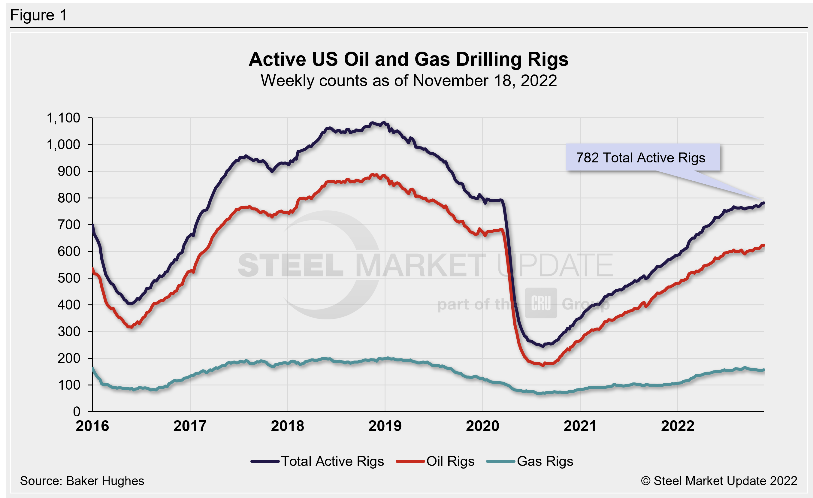 For a history of both the US and Canadian rig count, visit the Rig Count page on the Steel Market Update website here.