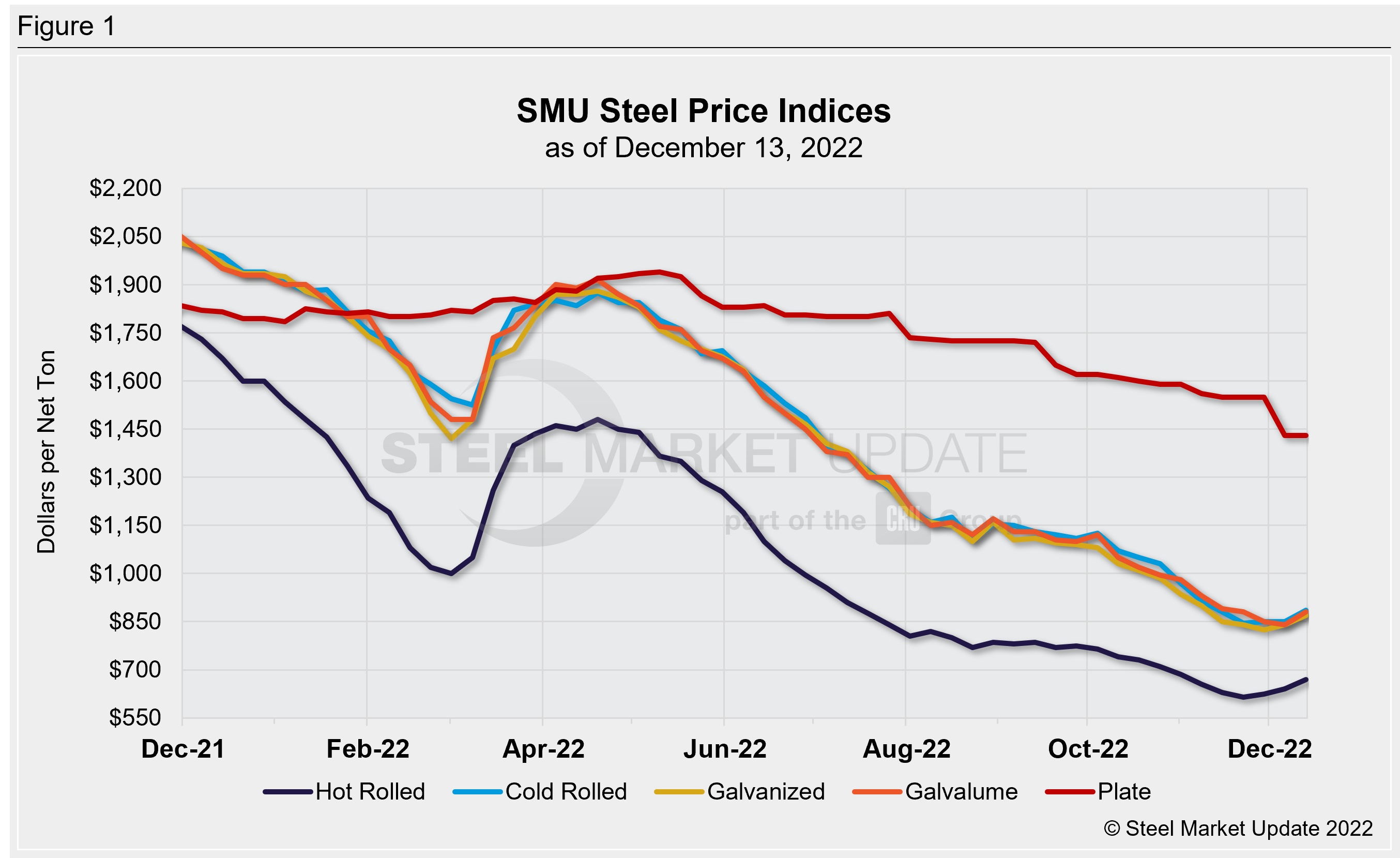 All told, SMU’s benchmark hot-rolled coil price stands $670 per ton, up $30 per ton from the week prior and up $55 per ton from $615 before Thanksgiving – a period that saw discounting ahead of the price hikes.