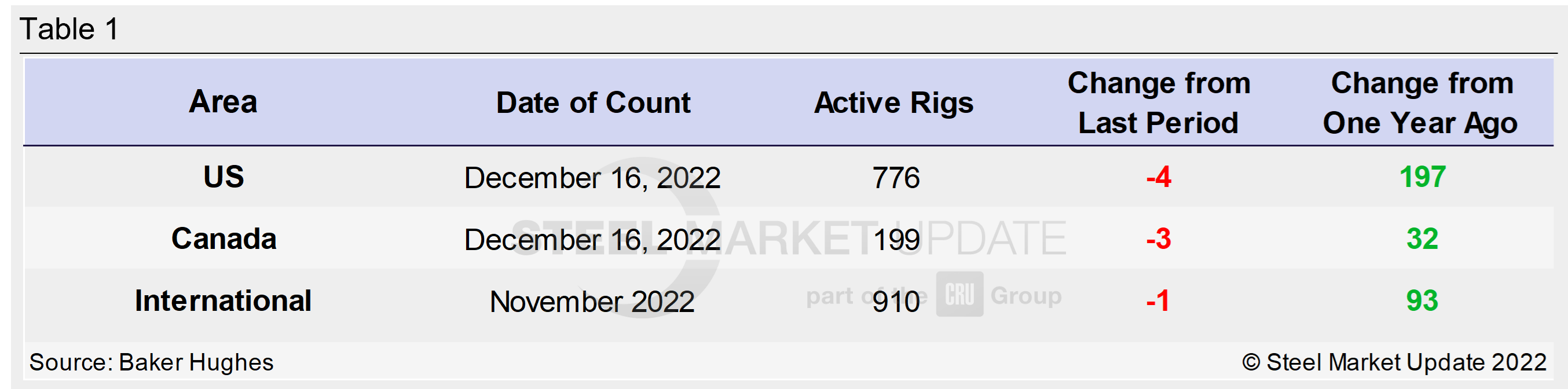 For a history of both the US and Canadian rig count, visit the Rig Count page on the Steel Market Update website here.