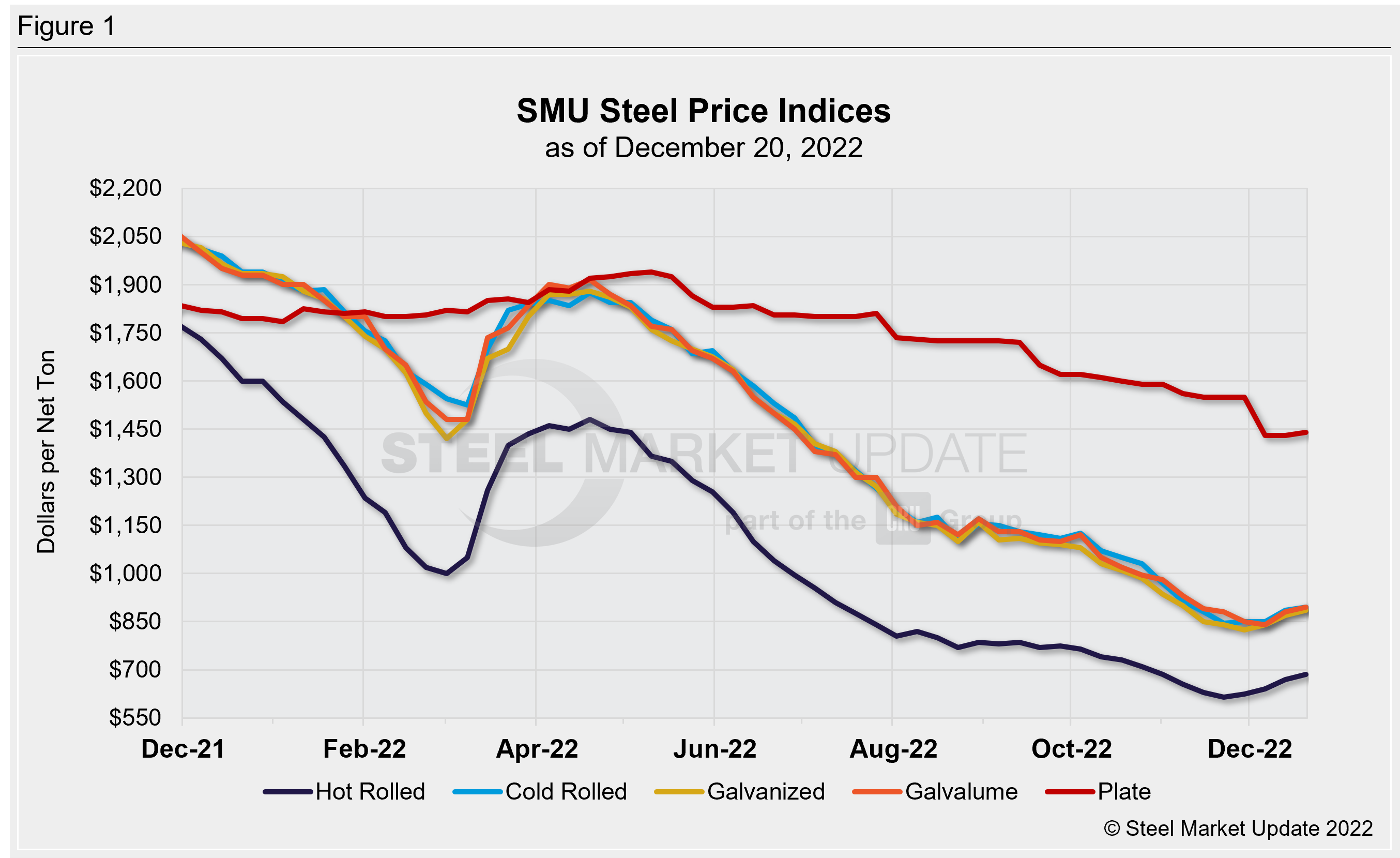 SMU Note: Below is a graphic showing our hot rolled, cold rolled, galvanized, Galvalume, and plate price history. This data is available here on our website with our interactive pricing tool. If you need help navigating the website or need to know your login information, contact us at info@SteelMarketUpdate.com.