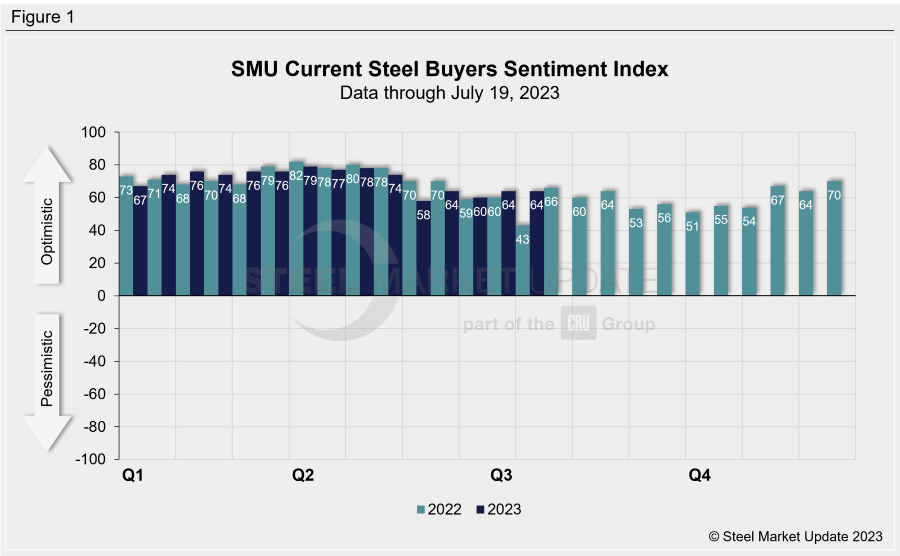 The SMU Steel Buyers Sentiment Index measures the attitude of buyers and sellers of flat-rolled steel products in North America. It is a proprietary product developed by Steel Market Update for the North American steel industry. Tracking steel buyers’ sentiment is helpful in predicting their future behavior.