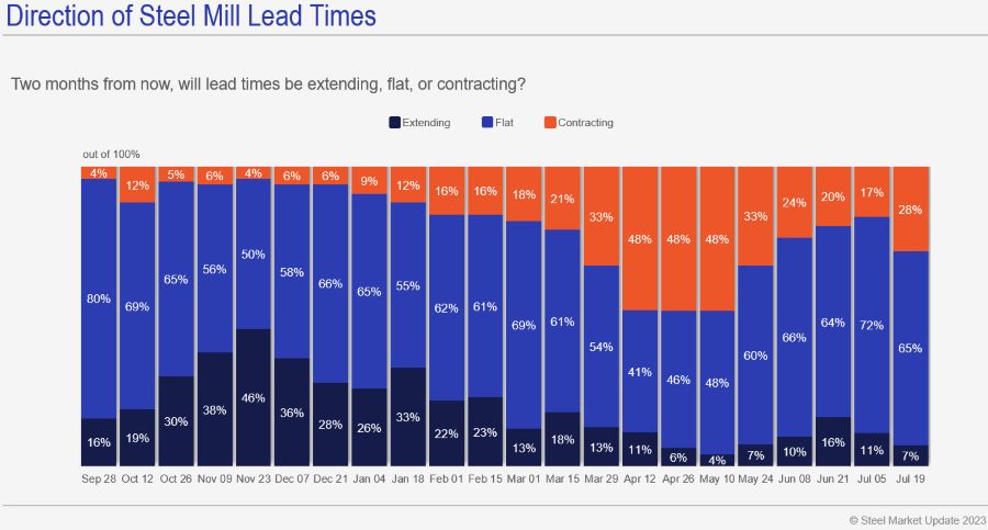 Since late May, there had been a steady increase in the number of respondents predicting that lead times would increase or at least hold steady. More recently, we’ve seen an uptick in the number of people who predict that lead times will be lower two months from now.