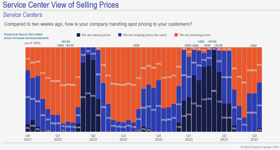 Meanwhile, nearly 60% of service centers respondents report that they are holding prices steady or increasing them: