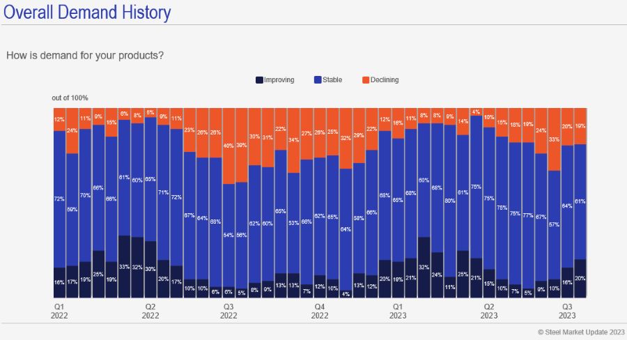 We’ve even seen a modest uptick in the number of people reporting improving demand – from only 5% in mid-Q2 to 20% now.