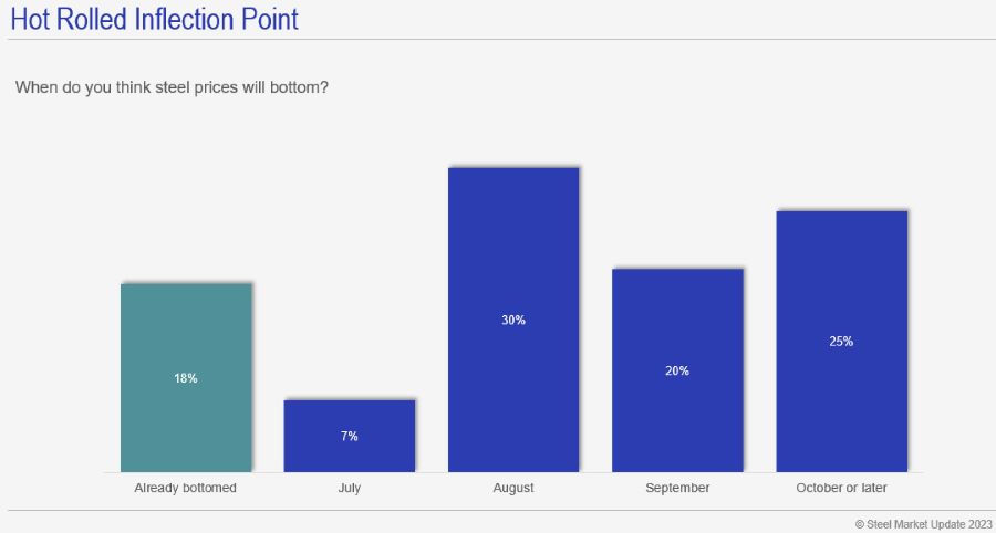 Nearly half of our survey respondents now think it is likely that HRC prices won’t bottom until September or October.