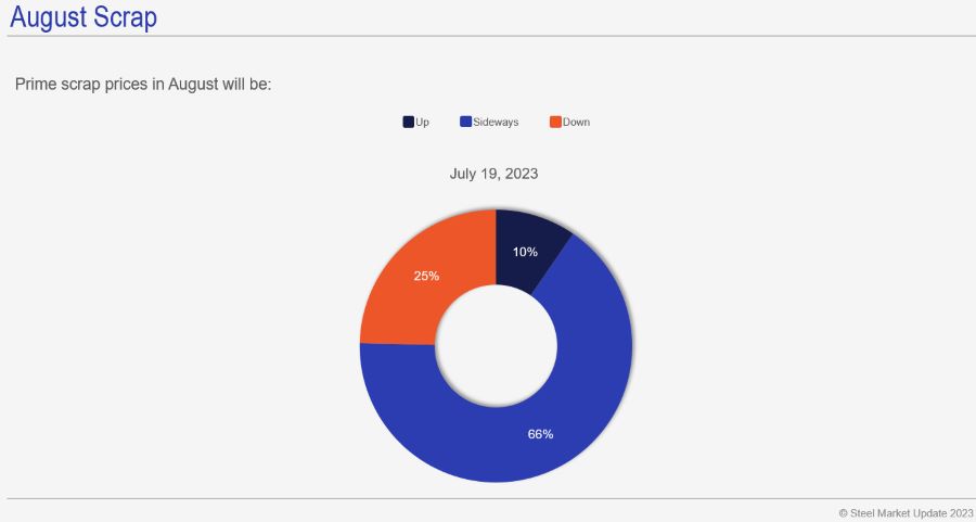Maybe we’re seeing mills discounting ahead of a price hike should scrap prices rise in August? The consensus view, per out latest survey, is that August scrap will be higher: