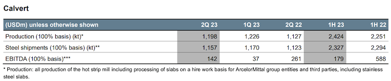 However, Ebitda was 13% lower year over year “mainly due to a negative price cost effect, offset in part by higher steel shipments and contribution from ArcelorMittal Texas HBI.”