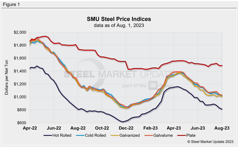SMU Note: Below is a graphic showing our hot rolled, cold rolled, galvanized, Galvalume, and plate price history. This data is available here on our website with our interactive pricing tool. If you need help navigating the website or need to know your login information, contact us at info@steelmarketupdate.com.