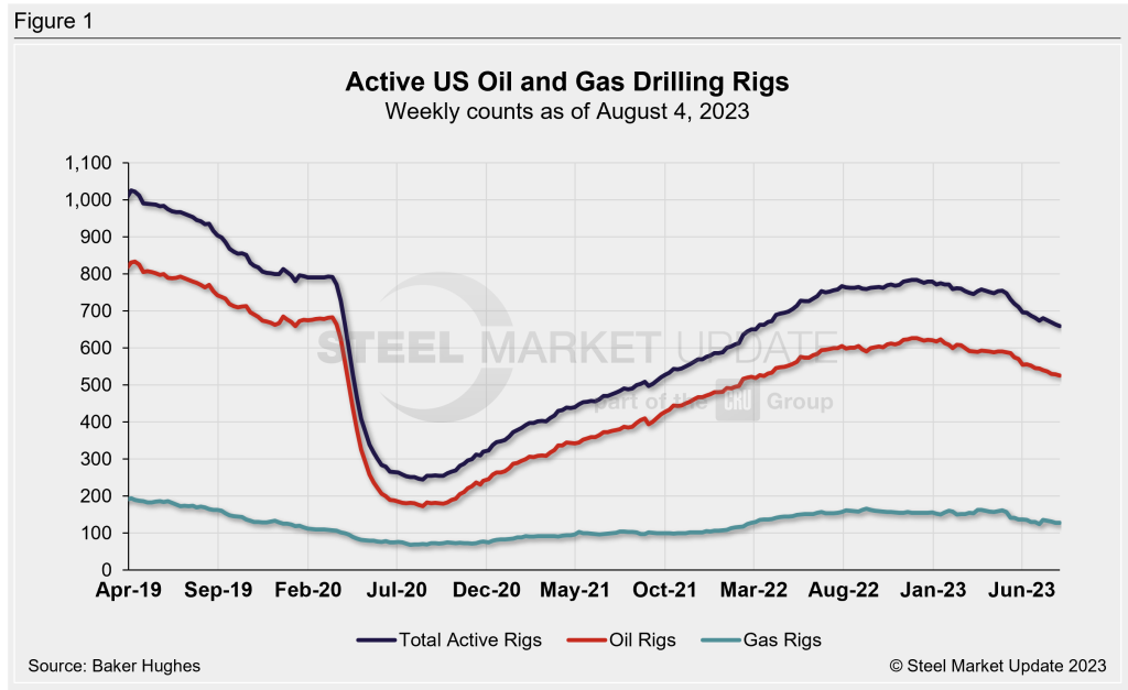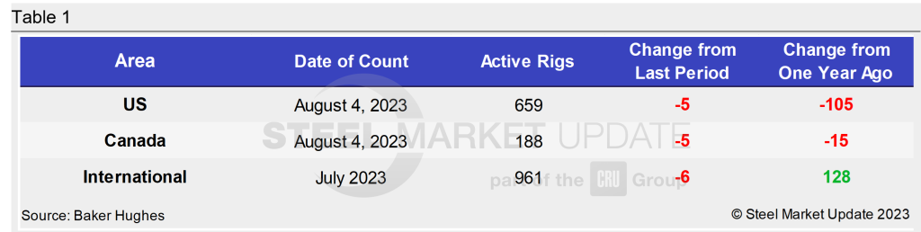 For a history of both the US and Canadian rig count, visit the Rig Count page on the Steel Market Update website here.
