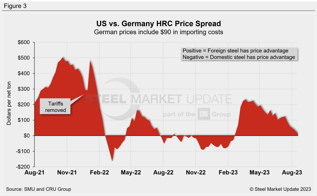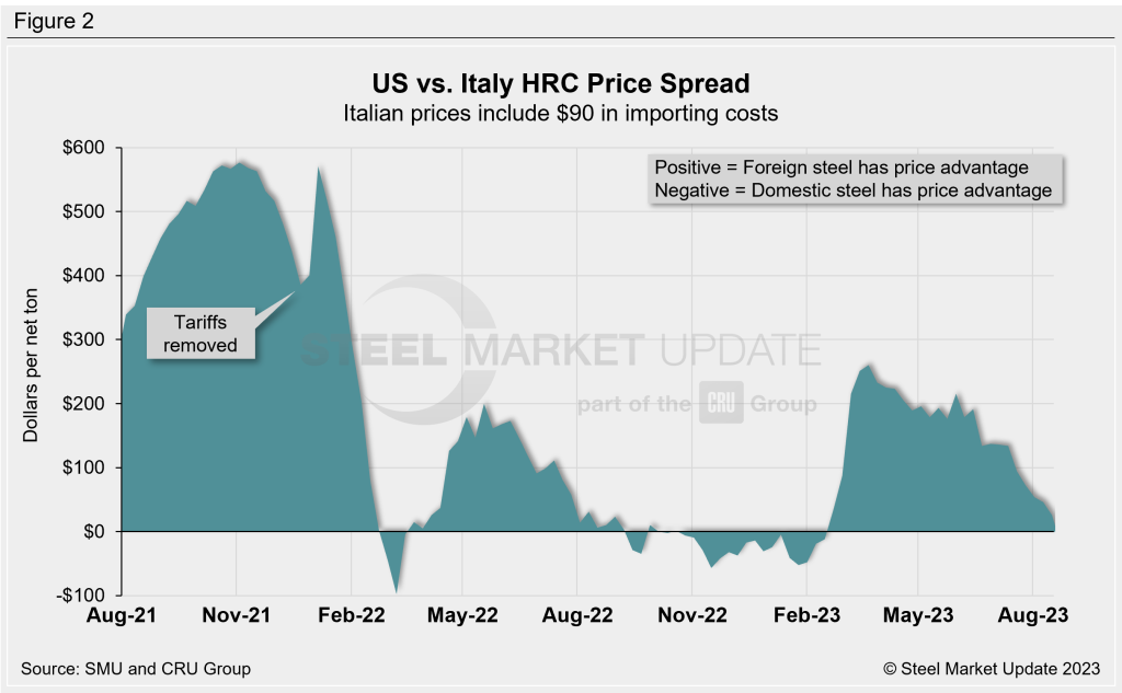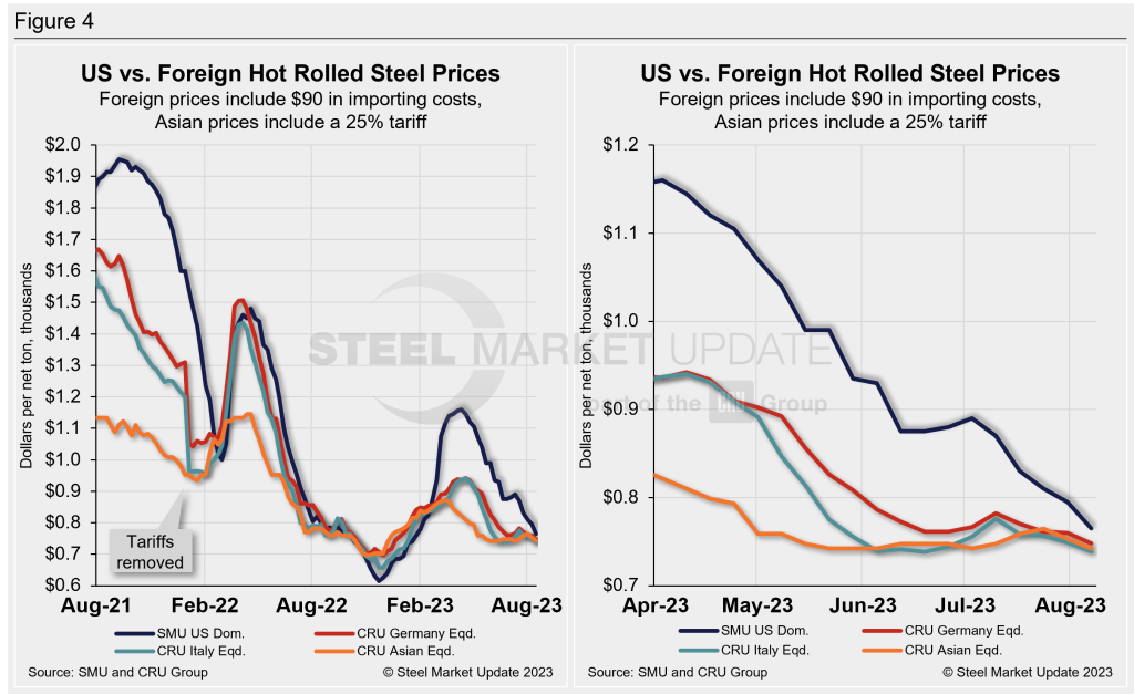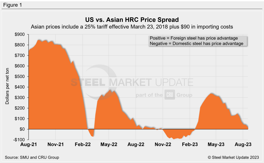 US-produced HRC is now theoretically $23 per ton more expensive than steel imported from Asia.