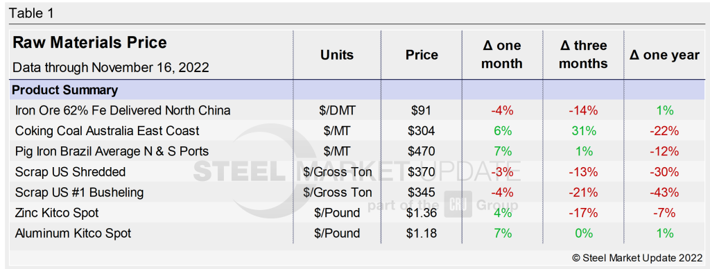 Steel Market Update analyzes the prices of steelmaking raw materials, including iron ore, coking coal, pig iron, scrap, zinc and aluminum. We perform this analysis monthly around the middle of the month.